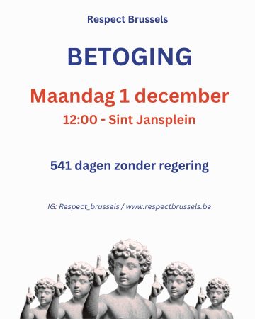 Daarom steunen wij de oproep van ‘Respect Brussels’ om opnieuw de straat op te gaan. Afspraak op maandag 1 december om 12u, aan het Brusselse Parlement (Sint-Jansplein).