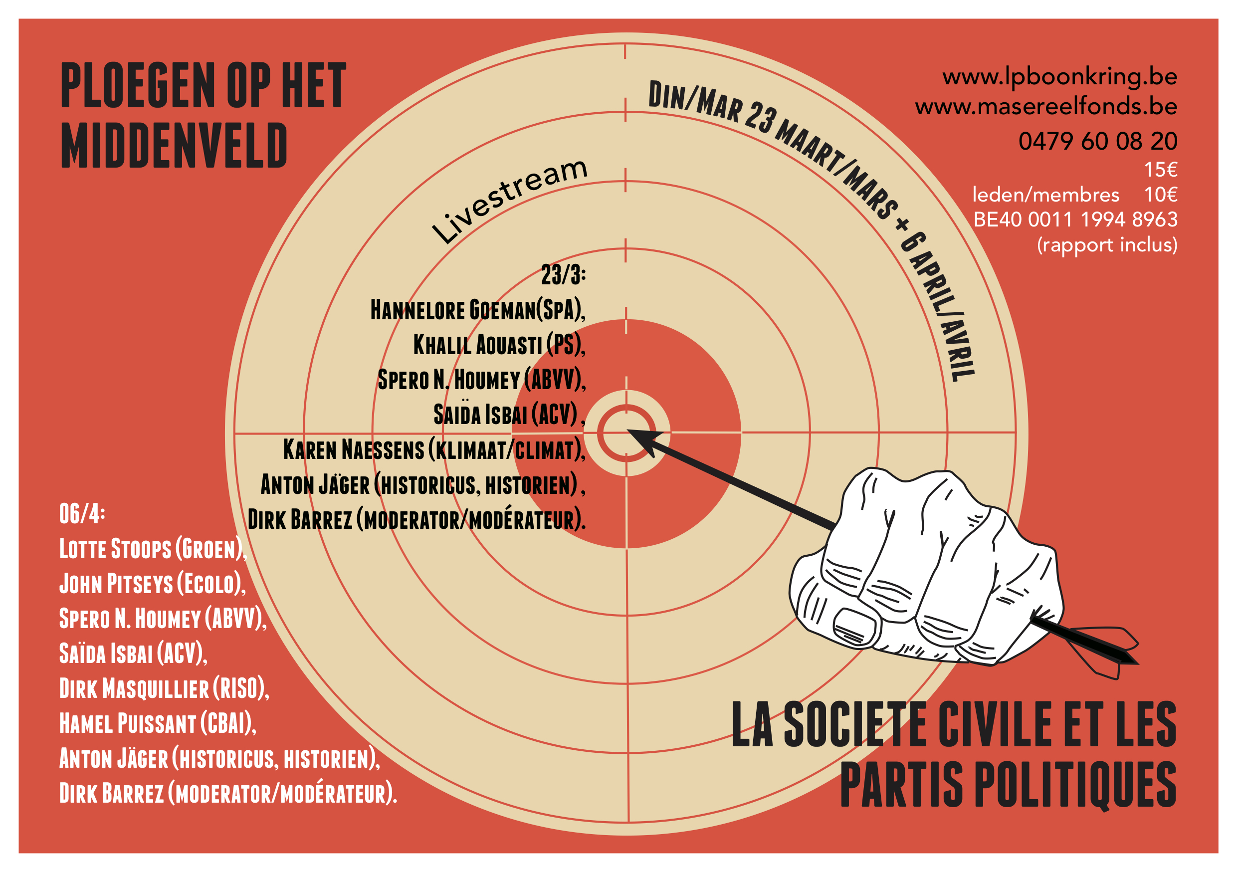 momentum waar er bereidheid lijkt te bestaan om fundamenteel vragen te stellen bij het neo-liberaal beleid. Wordt nu ook de boot weer gemist? Om ons sociaal-economisch stelsel te reorganiseren vanuit andere ethische, sociale, faire en duurzame perspectieven is slagkracht vanuit het ganse middenveld nodig. Zijn partijen niet langer representatief omdat ze misschien het middenveld loslieten? Andere, populistische partijen willen dan weer dit middenveld uitschakelen. Ze willen zelf vertolken wat het “volk” zegt en vervolgens doen wat ze zelf zeggen dat het volk vraagt. Hierrond organiseren we twee avonden waarbij doorheen de gesprekken met progressieve politieke partijen, vakbonden, klimaatbeweging enz. de mogelijkheden, de voorwaarden en de strategieën in kaart worden gebracht.