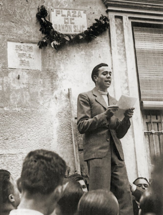 In 1931 trekt hij voor het eerst naar Madrid, waar hij zich poogt aan te sluiten bij de literaire intelligentsia van de hoofdstad – een initiatief dat weinig succes kent. Pas bij een tweede poging, in 1933, vindt hij werk in de stad – hij heeft dan net een eerste gedichtenbundel in druk gepubliceerd (Perito en lunas). In die periode wordt het verzet van conservatieve, ultrakatholieke en reactionaire krachten in Spanje steeds heftiger. Als een deel van het Spaanse leger vanuit de Spaanse kolonie Marokko een burgeroorlog ontketent, geeft Miguel Hernández zich op als vrijwilliger van het republikeinse leger, wordt hij lid van de communistische partij en vecht hij mee op verschillende fronten. Hij brengt het zelfs tot politiek commissaris van zijn militaire eenheid en trekt langs de frontlijnen om zijn makkers moed in te spreken in hun strijd tegen de door Hitler en Mussolini gesteunde opstandelingen. Ondertussen is Miguel ook getrouwd met zijn jeugdliefde Josefina Manresa, aan wie hij honderden liefdesgedichten zal wijden, met een – naar Spaanse normen – sterke erotische lading. Hun eerste zoontje sterft al na enkele maanden aan ondervoeding. Een tweede zoon komt ter wereld in een omgeving getekend door oorlog, honger en ontberingen.