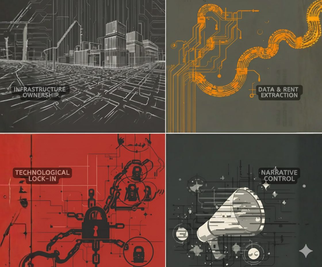 Bovenal is het een populaire mythe dat Silicon Valley veel productieve meerwaarde creëert. Het kapitalisme was oorspronkelijk een productie-gecentreerd systeem dat als logica heeft om steeds meer meerwaarde voort te brengen. De digitalisering is eerder het product van de financialisatie van onze economie. Het teert tevens op voortdurende rente-extractie uit de reële economie, waardoor we de huidige digitalisering eerder kunnen bekijken als een mechanisme om “gestolen waarde” ter beschikking te stellen aan de financiële markten. Het land van de innovatie zit vol landlords, techno-renteniers, die de praktijken van de financiële markten hebben gekopieerd. Het rentenierskapitalisme heeft zijn dominantie na de crash van 2008 veiliggesteld door middel van een platformisering van de globale economie. Techno-bedrijven beheren als gatekeepers alle bewegingen op het net, waardoor elke economische activiteit noodzakelijk door hun handen passeert. Ze kunnen elke digitale beweging maken of kraken, en je kunt alleen gebruikmaken van de digitale weg wanneer je eerst passeert langs de digitale kassa. Met andere woorden, je betaalt tol aan een digitale huisbaas – de landlord.